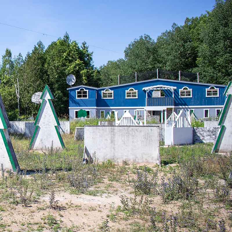 Battle breaks out on the front lawn of the white house. Trees and fences double as bunkers when the fighting begins. The small, compact size of this field makes it fun for beginners and experienced players alike.